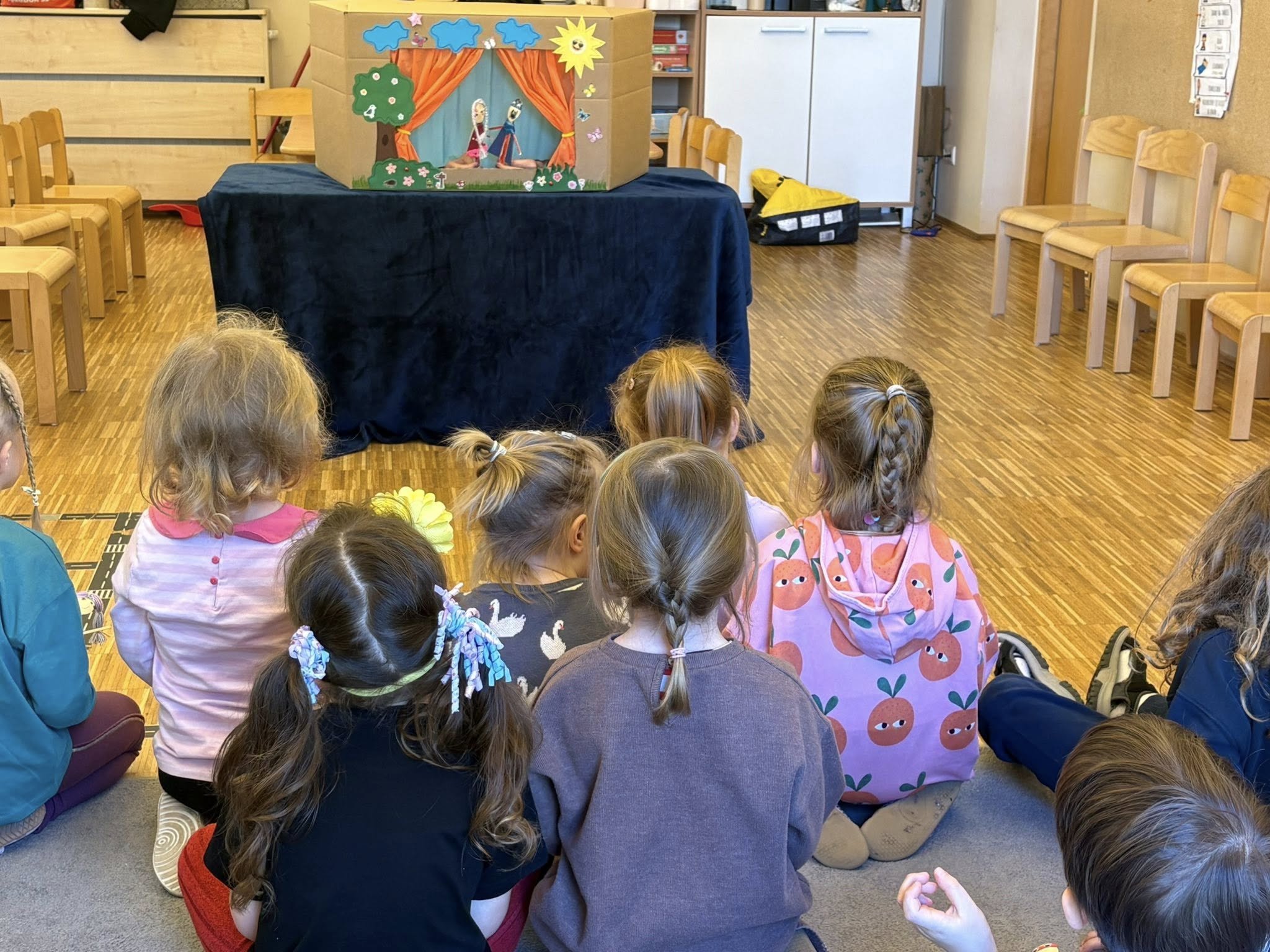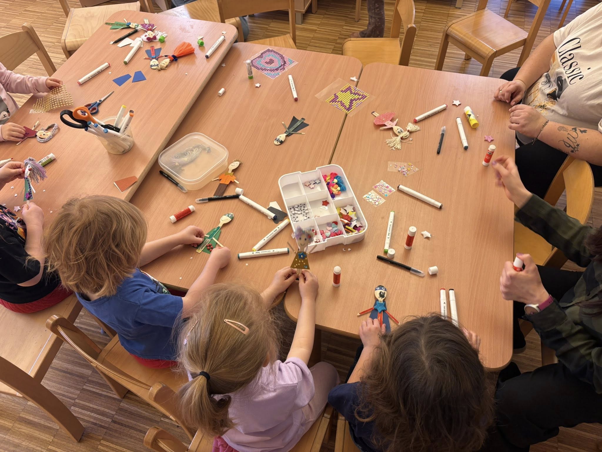 Muchomorki w ramach projektu „Lalka” gościły dziś mamę Poli – Panią Kasię, która wspólnie z dziećmi wykonała lalki z drewnianych łyżek. W drugiej części spotkania Pani Kasia odegrała w przygotowanym przez siebie teatrzyku scenkę o pokonywaniu strachu.