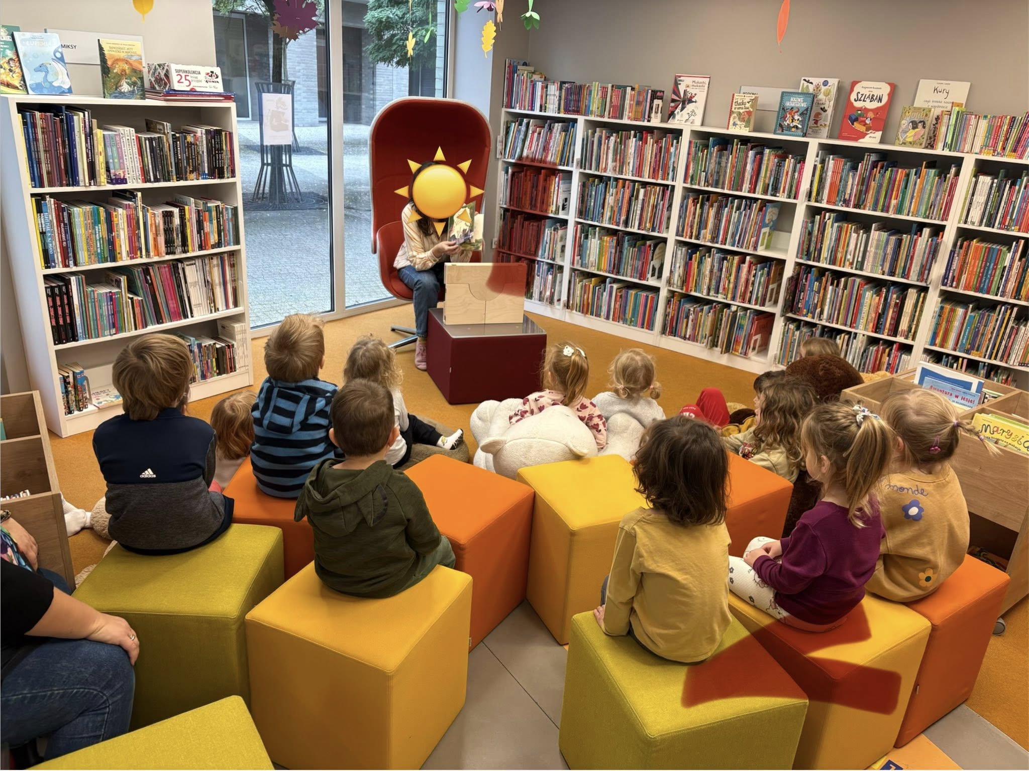 Wizyta MUCHOMORÓW w bibliotece Raczyńskich 2025-10-15 Bo każda książka to nowa podróż! Dziś nasze MUCHOMORY przeniosły się w magiczny świat wyobraźni, pełen przygód i kolorowych bohaterów biorąc udział w warsztatach z organizowanych przez bibliotekę Raczyńskich.