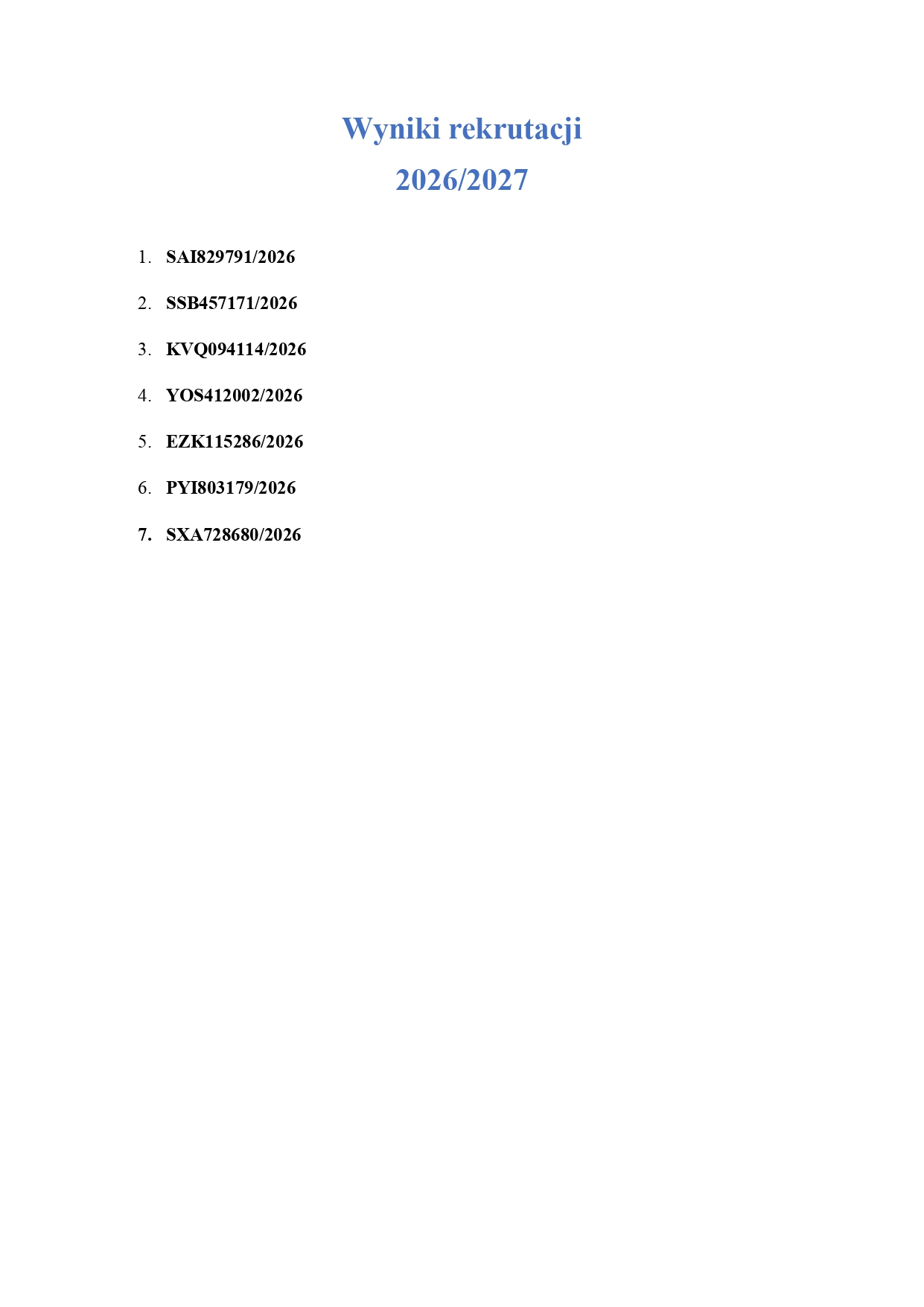 WYNIKI REKRUTACJI 2026/2027