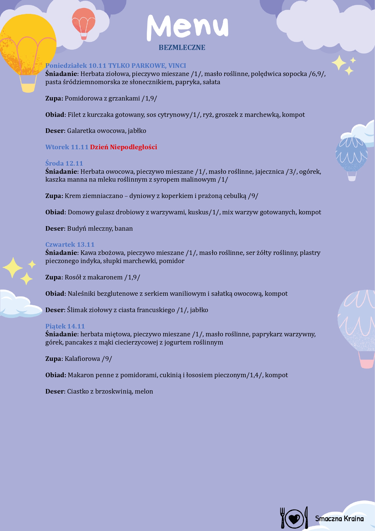 MENU BEZMLECZNE: