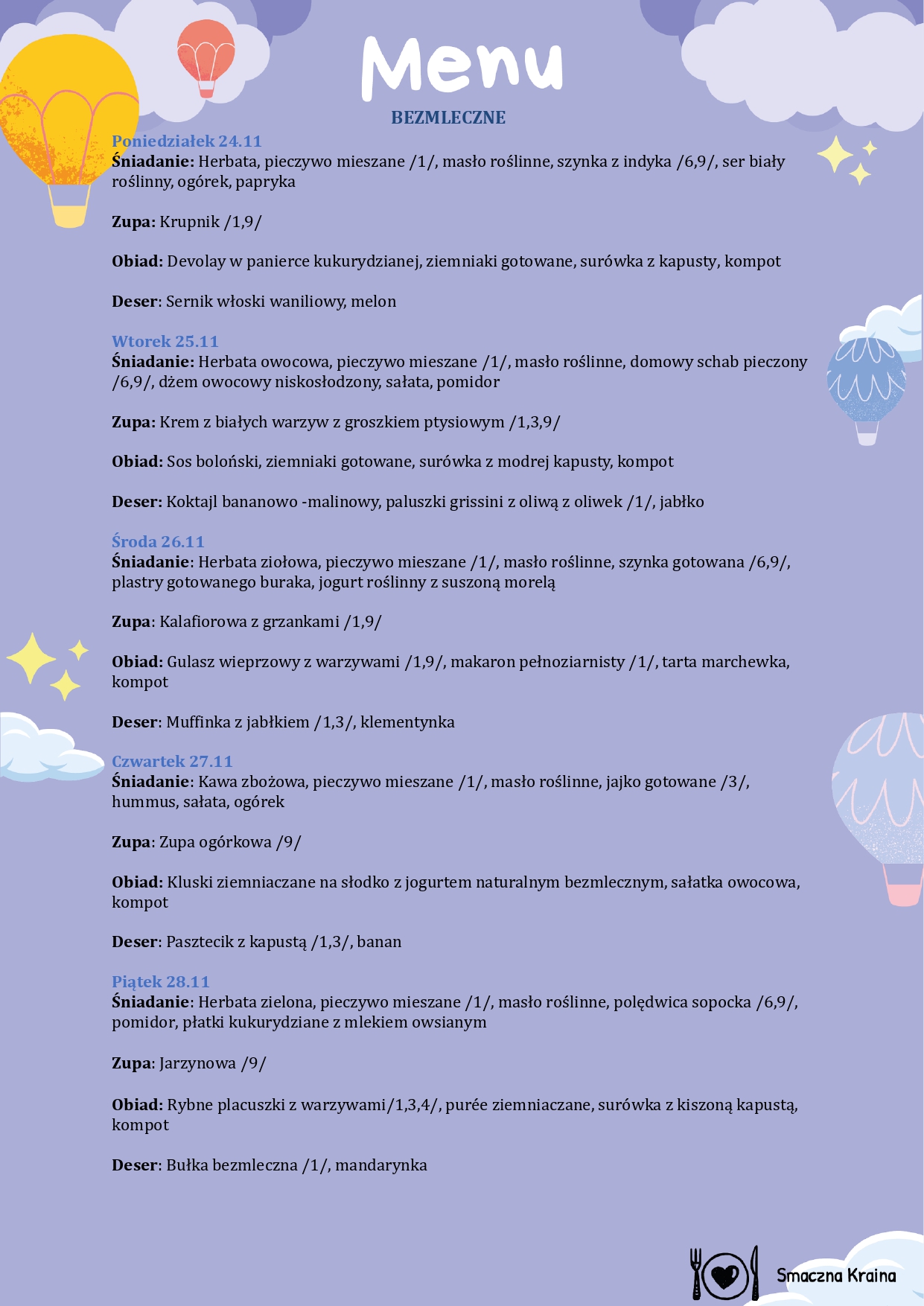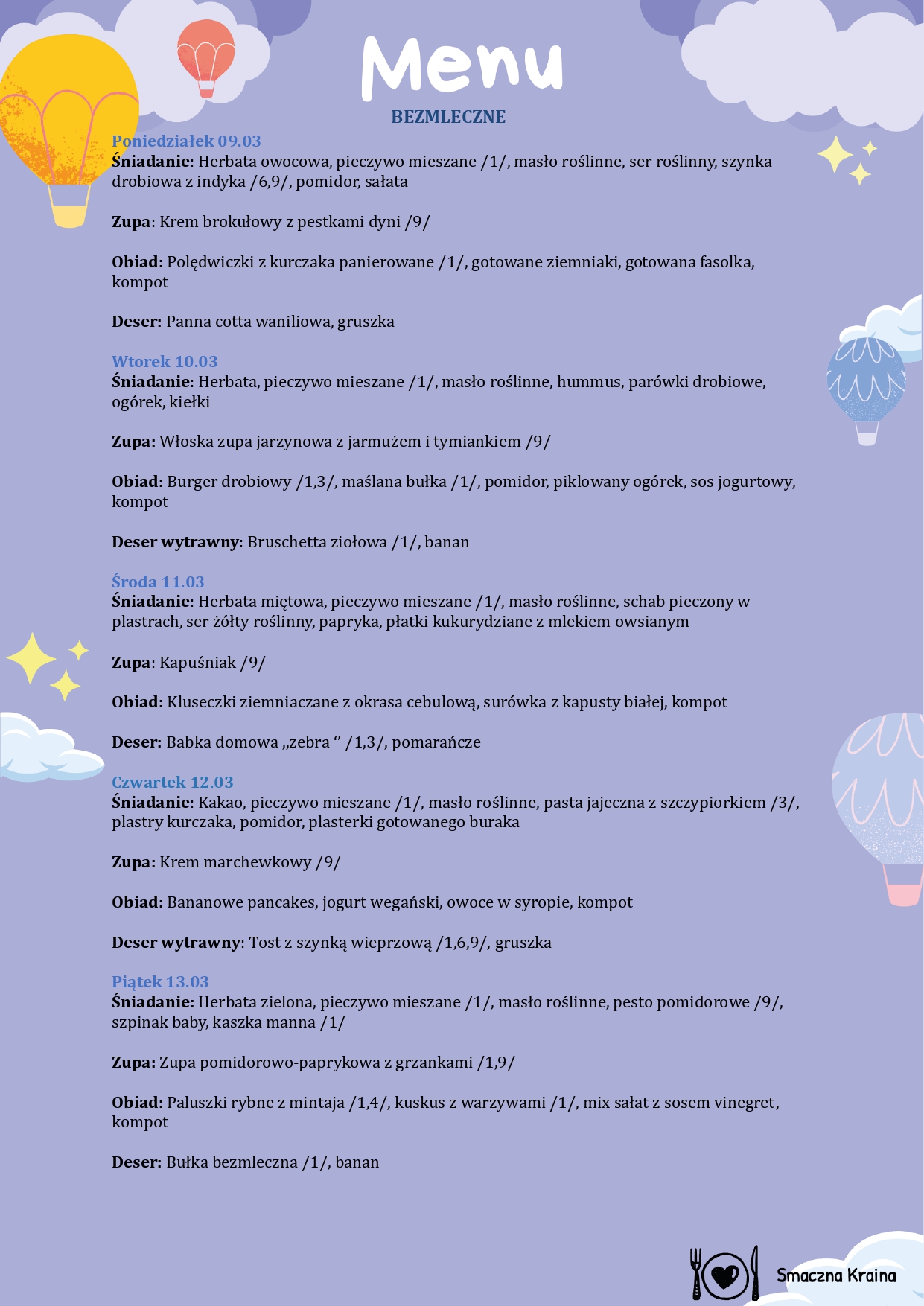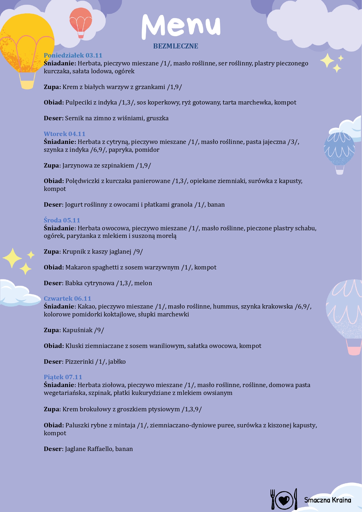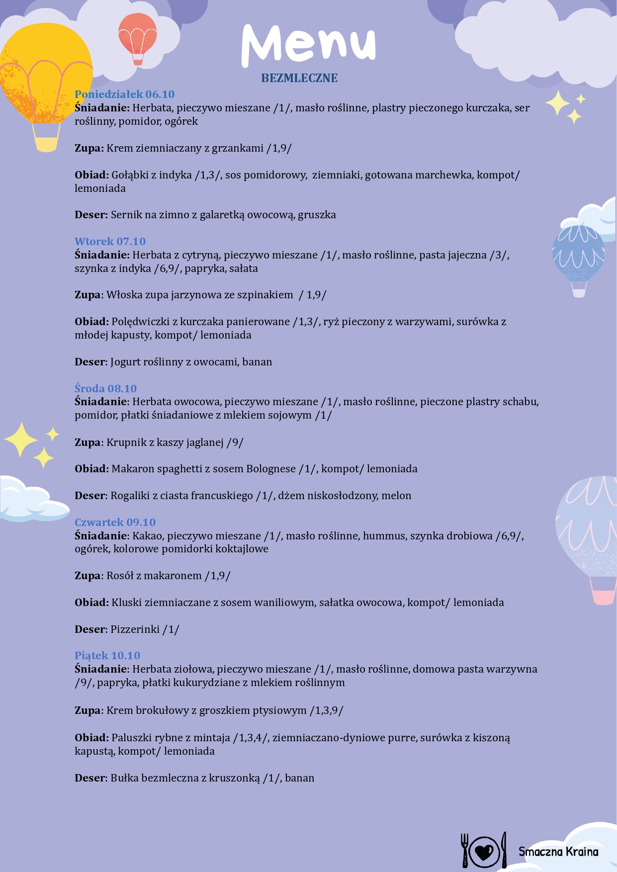 MENU BEZMLECZNE: